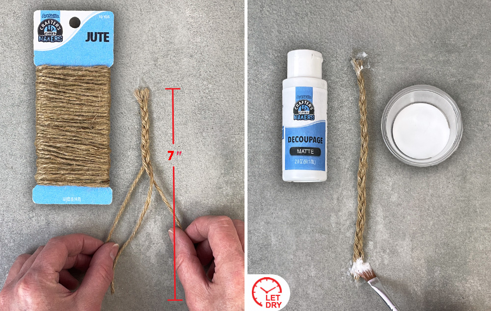 B) Use a decoupage medium to seal the ends of the braid so it holds together. Let dry.
