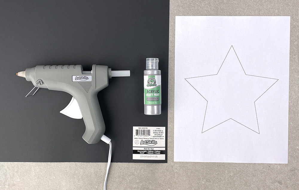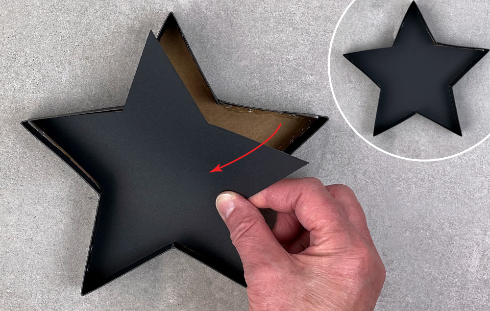 A) Insert the black poster board star into the dimensional base. Tip: Secure it with a few dabs of hot glue if needed.