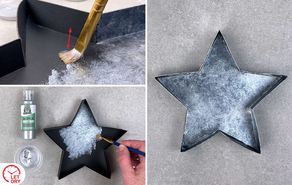 A) Using a dabbing motion, apply silver metallic paint to the base and sides of the star. Let dry.