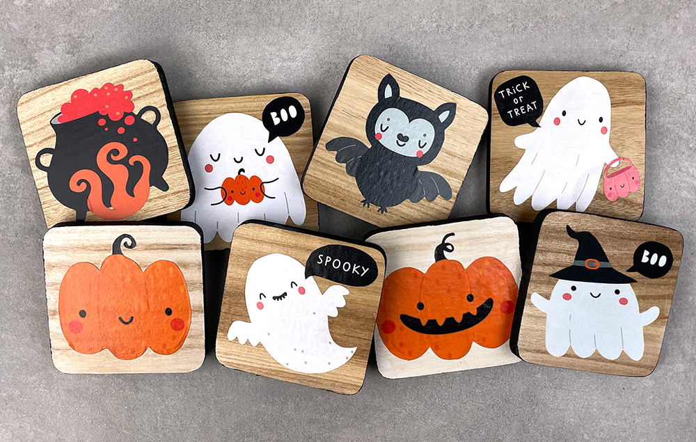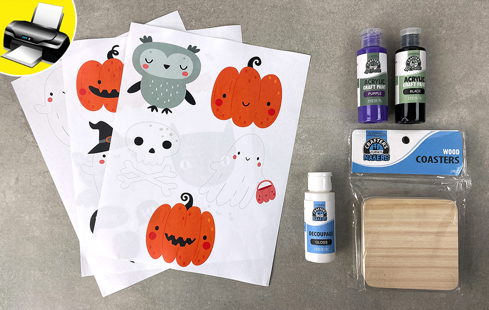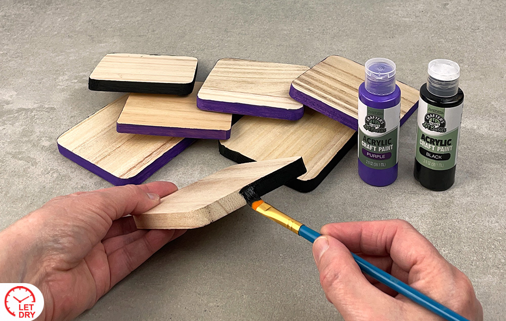 A) Paint the sides of the wood coasters in Halloween colors and let them dry completely.