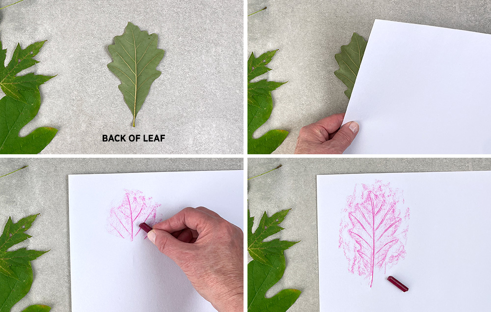 A) Place a leaf face down on your work surface. Tip: The back of the leaf has more prominent veins and will give the best results.