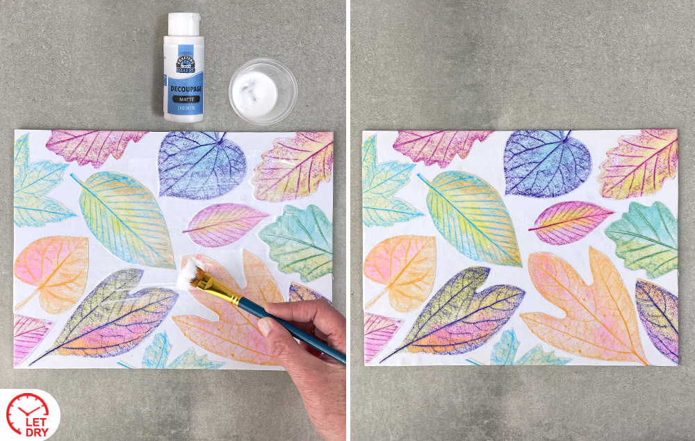 A) Apply a final coat of decoupage medium over the entire surface to seal and protect the artwork.