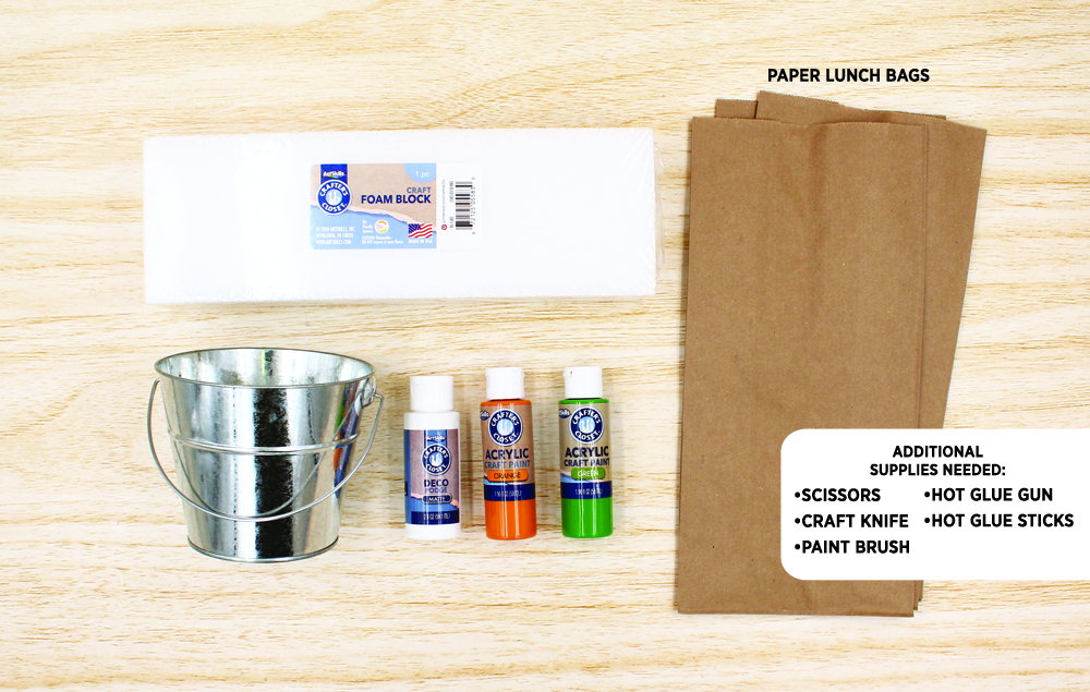 D) Lay the second paper bag flat and paint it green. Let dry.