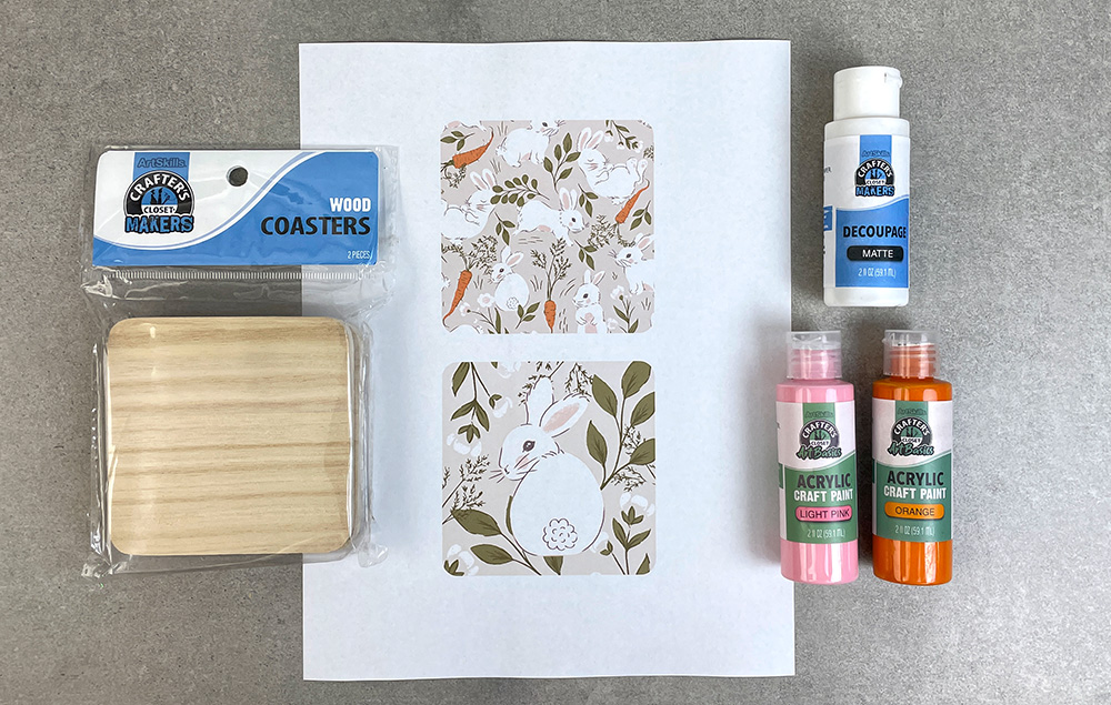 Transform blank wooden coasters into charming spring décor with sweet bunny-themed designs. Using paint and decoupage, you’ll create handmade coasters that are perfect for seasonal decorating or gifting.